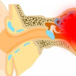 - Развитие воспаления слизистой, сопровождающееся нарастающей заложенностью уха, резкой болью, повышением температуры.